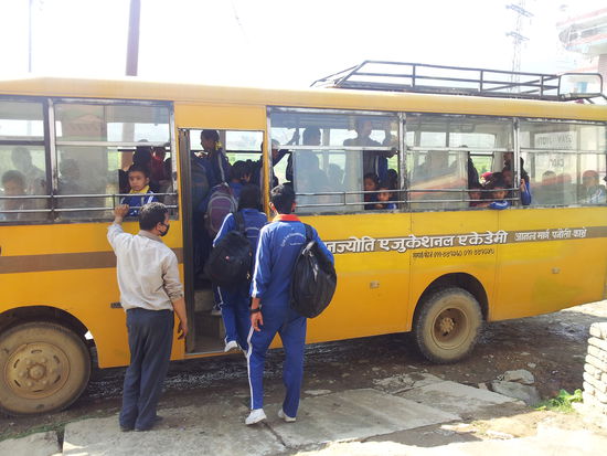 Die Kinder werden morgens mit dem Schulbus abgeholt und am späteren Nachmittag zurück gebracht.