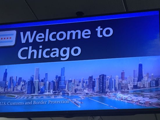 Was jedoch nach der Landung abgeht, das hat die Welt noch nicht gesehen. Am Ende der Gangway stehen schon mehrere Guides, geben jeden von uns den roten Zettel mit der Aufschrift : express connection und schubsen uns binnen 20 Minuten durch alle Sicherheitsschleusen, wir werden durchgereicht zum Zug zu Terminal 5B und werden durch einen endlos lang scheinenden Gang zum Gate getrieben, es ist nicht mehr schön und mir ist eigentlich nur nach schreien zumute. Aber, man glaubt es nicht, wir erreichen tatsächlich unseren geplanten Flieger und nach weiteren 20 Minuten heisst es, ab in die Lüfte Richtung Chicago. Mir ist schlecht von der Rennerei, man sieht es mir offensichtlich an, denn eine mitfühlende Stewardess namens Natasha fragt mich ganz besorgt, ob denn alles in Ordnung wäre.... Wir erzählen ihr kurz von unserem Speed- Umstieg und sofort begreift sie, dass nur ein Mann namens Jack Daniels meinen Zustand verbessern kann. Zwei weitere Jackies später fange ich an, das Fliegen zu mögen und wende mich dem Filmprogramm des Jumbo-Jets Boeing 747-400 zu. Was schau ich mir nur an, Everest oder The Martian? Der erstere gewinnt. Und als wüssten die Wolken, dass wir sehr gerne mal Grönland sehen würden, reißen die genau zum richtigen Zeitpunkt auf und es ist ein Wahnsinnsbild, das sich unter unseren Augen eröffnet.