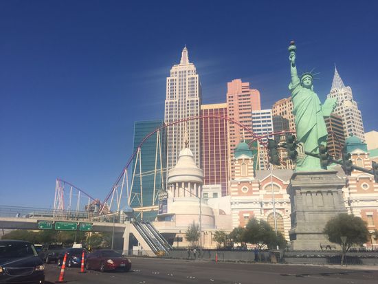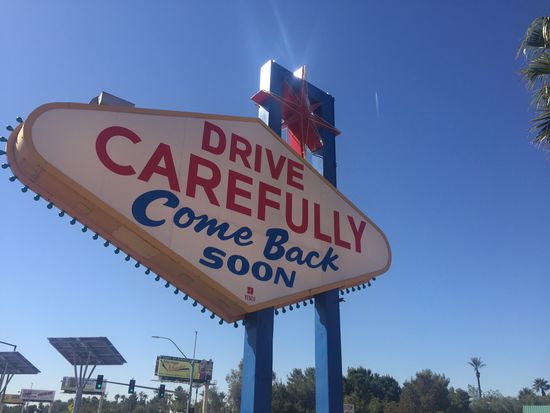 Und weiter gehts, bis es auf einmal hinterm Berg hell wird und ein Talkessel, gefühlt von den Ausmaßen des eben durchfahrenen, sich vor uns erleuchtet, wir sind in Las Vegas.