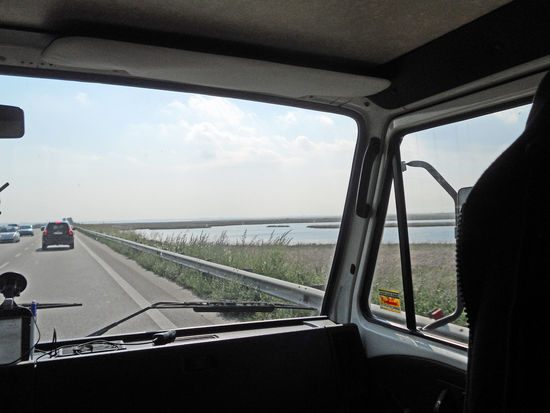 9.50 Uhr – wir fahren auf die A 57, Kosten 14,10 Euro. Weiter SS 309 Richtung Ravenna – 10.30 Uhr. Die Straße hier ist eng, kaputt und sehr stark befahren. Im Radio hören wir von 5 Unfällen auf der Autobahn.