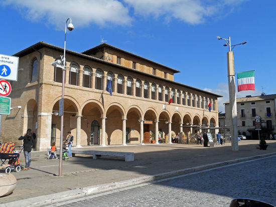 Das großartige Gebäude in klassischem Stil, von einer Kuppel gekrönt und von weitem sichtbar gemacht, beherrscht die gesamte umgebende Ebene unterhalb von Assisi.