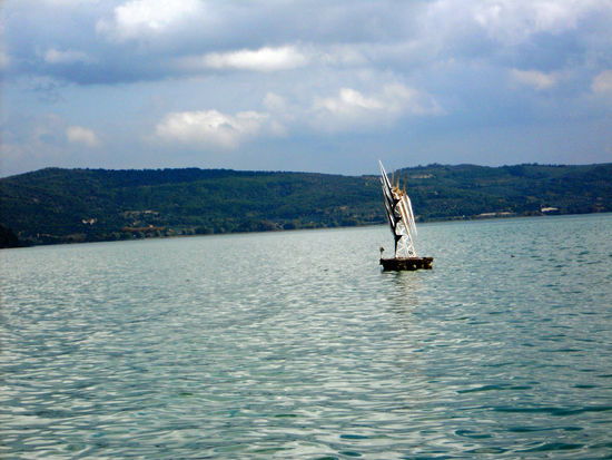Und zum Abendessen haben wir Huhn, Auberginen, Pfirsiche, Salat, Brot und Wein. Wir erleben mal wieder einen phantastischen Sonnenuntergang. Das Farbspiel am Himmel über dem See ist wunderschön.