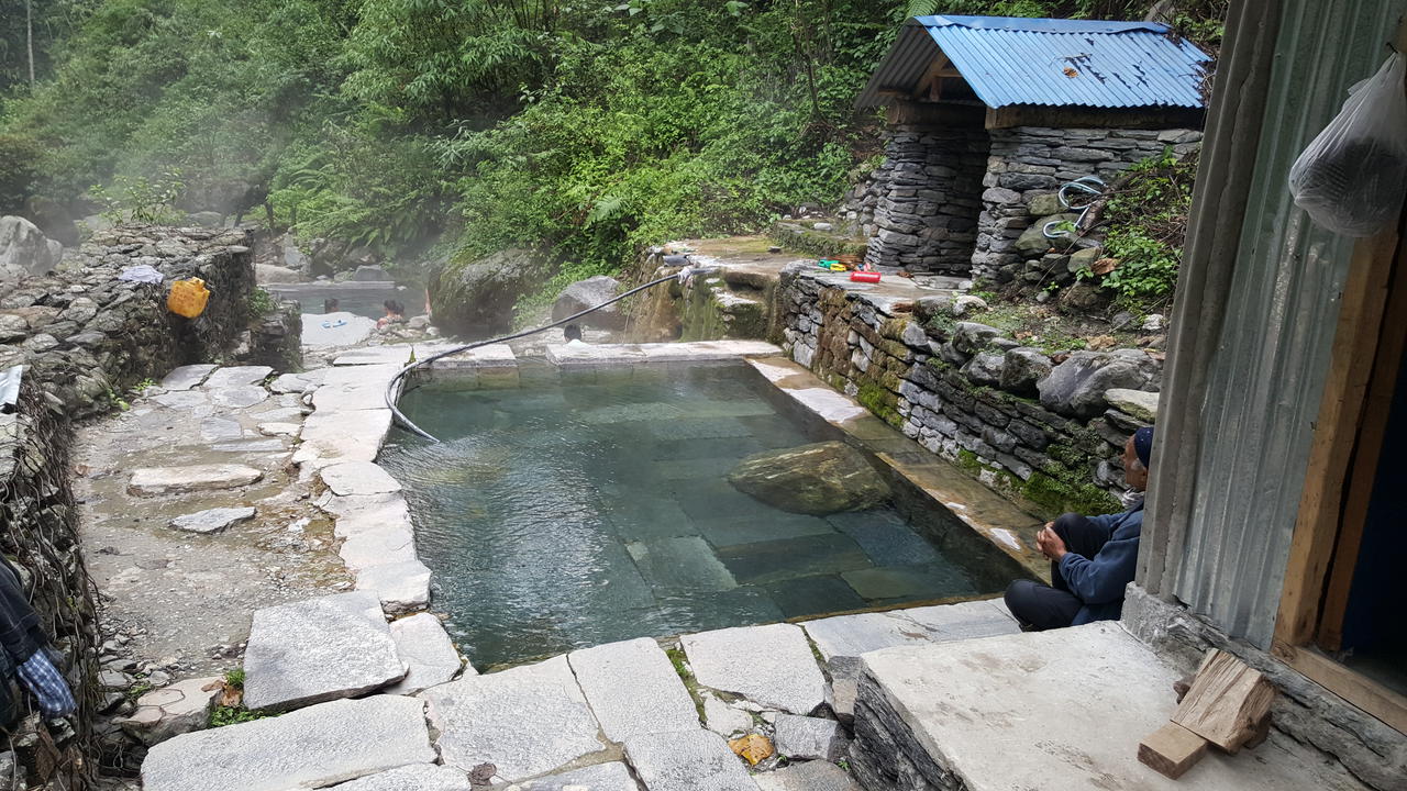 Das "Evergreen Hotel" ist zwar schön gelegen aber doch arg schmutzig. Wir sind froh unsere eigenen Schlafsäcke dabei zu haben. Auch WiFi soll extra kosten. Das war sonst nirgens der Fall. Die Besitzer sind aber wie immer sehr nett. Sie sagen uns, das es vom Hotel bis zu den Hot Springs ca. 15Minuten bergab und zurück 25Minuten bergauf sind. Diese Angaben sind aber nur für Einheimische bzw gut Trainierte. Für uns zwei "Flachland Tiroler" kann man ruhig ein Drittel mehr rechnen