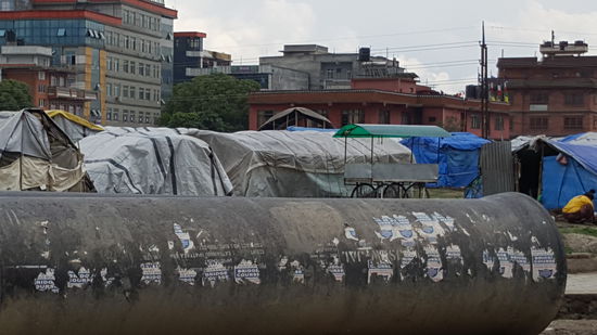 Ganz in der Nähe befindet sich eine der vielen Zeltstädte, hier sind die Menschen untergebracht, die nach dem Erdbeben ihre Unterkünfte verloren haben. Schon einige Male haben wir uns gefragt wie die Menschen dort wohl ihr Dasein fristen. Vor allem mit den heftigen Regenfällen.