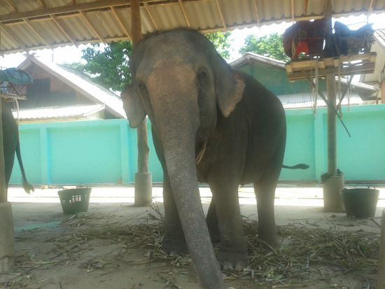 An unserem letzten Tag auf der Insel haben wir uns alle gemeinsam noch einmal auf den Roller geschwungen und sind zu den Elefanten gefahren. Eigentlich schon fast eine Pflicht, wenn man auf der Elefanteninsel ist. Man kann hier auch eine Tour buchen und auf einem Elefanten durch den Dschungel reiten. Das haben wir uns jedoch verkniffen.