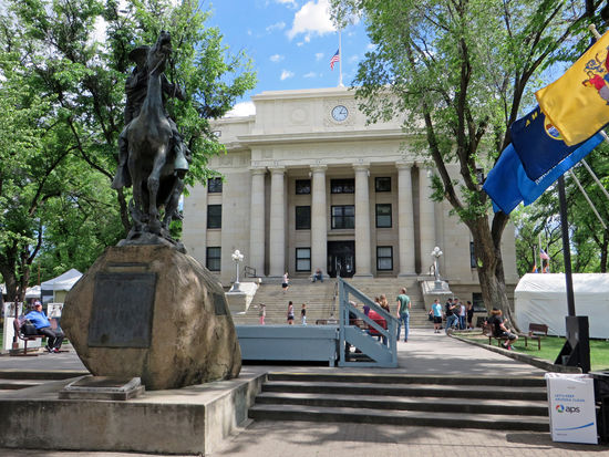 Dort ist vor dem Courthouse ein Kunst-markt. Viele Menschen sind unterwegs am Memorial Day. Am Himmel nehmen die schwarzen Wolken zu. Mal schauen, ob wir heute noch nass werden. Leider sehen wir einen Unfall auf der kurvigen Straße, HW 89 North.