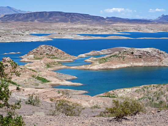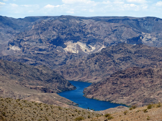 Kurzer Halt am Overlook Lake Mohave, Blick in die Black Canyon Wilderness. Und weiter geht die Fahrt, es ist drückend heiß. Dann halten wir am Visitor Center der Lake Mead National Recreation Area, hier gilt mal wieder unser Jahrespass. Wir machen eine Rundfahrt durch die herrliche Gegend, halten an verschiedenen Overlooks.