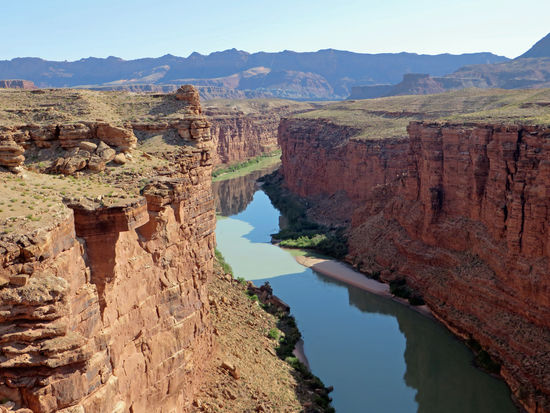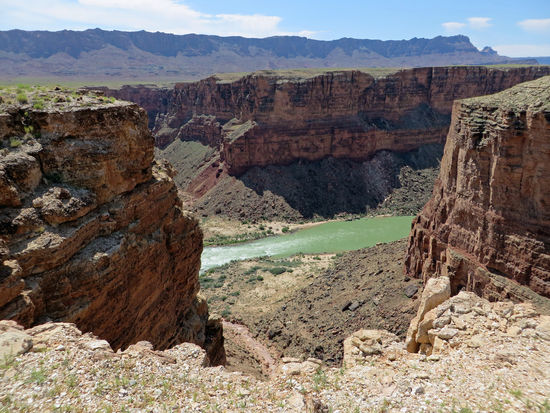 Hier ist die Schlucht des Marble Canyons, der in dem weiten Tal durch den Colorado eingeschliffen wurde, besonders eng und steilwandig - die idealen Voraussetzungen für eine Brücke. Genauer gesagt sind es heute zwei Brücken, die das Tal überspannen. Neben der historischen Brücke aus dem Jahr 1929 kam 1995 ein Neubau hinzu, der diese doppelte Brücke an der abseits gelegenen Stelle zu einem bizarren Blickfang macht. Als die erste Navajo Bridge am 12. Januar 1929 eröffnet wurde, vermeldete die Tageszeitung von Flagstaff die "biggest news in southwest history". Aus dem Blickwinkel der Zeit betrachtet kann man dies durchaus verstehen, war sie doch die einzige Brücke über den Colorado auf 965 Kilometern Flusslänge. Sie bildete damit eine lebenswichtige Verbindung zwischen Arizona und Utah. Der erste direkte Highway zwischen den beiden Bundesstaaten (jetzt Highway 89) führte über sie.