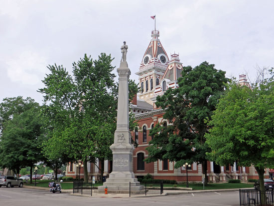 Eine andere Hinweistafel erzählt die Geschichte von Pontiac, dem großen (Kriegs-)Häuptling vom Stamm der Ottaqa im Gebiete der Großen Seen. Er wurde bekannt durch seine Rolle als Anführer des Pontiac-Aufstandes (1763–1764) gegen die britische Kolonialherrschaft. Ein Denkmal vor dem Courthouse erinnert an diesen großen Indianer-Häuptling. Wie Ihr wisst, interessieren mich solche Geschichten besonders.