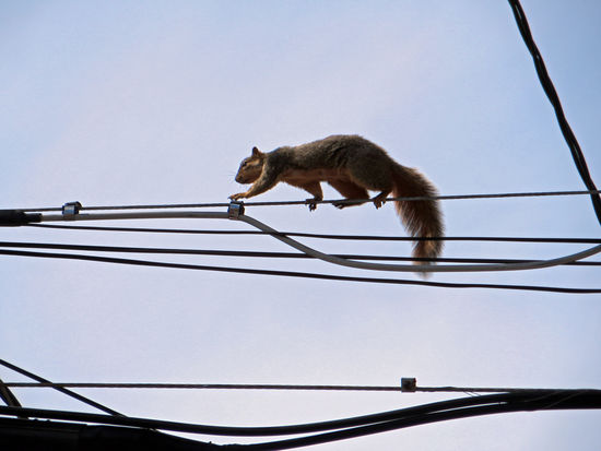 Was wir aber noch faszinierender finden, ist ein Eichhörnchen, welches über die Hochspannungsleitung balanciert, der reinste Wahnsinn, da zuzusehen. Rolf ist mal wieder irritiert zu sehen, wie die Leitungen hier verdrahtet sind. Ihm als Elektro-Ingenieur ist das oft nicht geheuer.