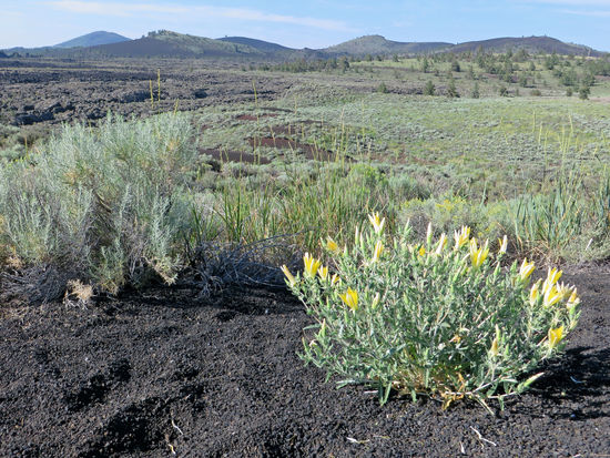 Wir besuchen in diesem Jahr wieder einmal Craters of the Moon National Monument. In diesem Jahr ist der Park besonders schön – die Lava Cinder Gärten sind bedeckt mit Blumen. Im Park ist viel Neues zu sehen. Neue Wege und Straßen wurden angelegt und wir nutzen die Gelegenheit, uns alles anzuschauen. Rolf ist in seinem Element und macht viele schöne Bilder von der herrlichen Gegend, ehe wir weiterfahren.