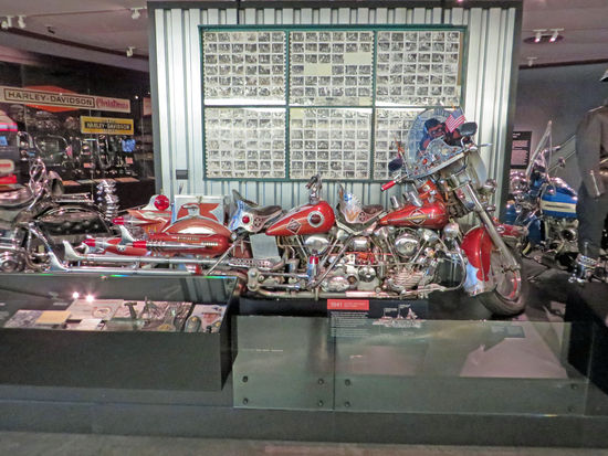 Das Herzstück der Galerie ist „King Kong“, eine 4 m lange, 2-motorige Harley-Davidson, von Felix Predko. Die Ausstellung zeigt auch exakte Kopien der maßgeschneiderten Motorräder, gefahren von Peter Fonda und Dennis Hopper 1969 in dem Film „Easy Rider“, einschl. Fondas „Capitain America“ Chopper and Hoppers „Billy Bike“.