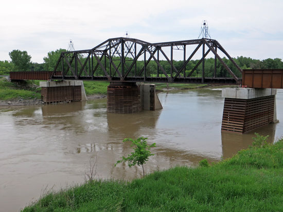 Wir überqueren den Red River of the North. Er bildet hier die Grenze zwischen Minnesota und North Dakota. The Red River of the North ist ca. 890 km lang, davon liegen 635 km in den USA und 255 km in Kanada. Nach der Schneeschmelze kommt es häufig zu Hochwasser und Überschwemmungen in den nahen Ufergebieten des Flusses.