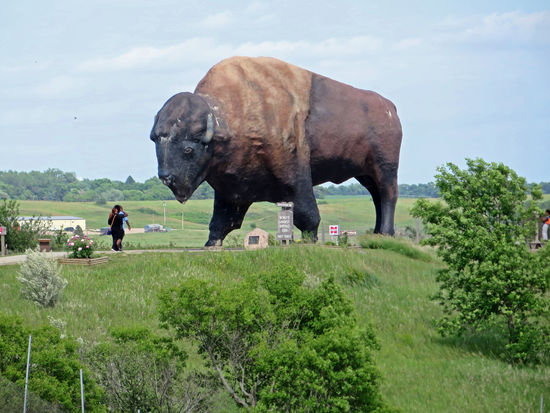 Dann geht es auf die Interstate 94 gen Westen. Der Himmel ist dunkel bei unserer Abfahrt, doch je weiter wir gen Westen kommen, desto sonniger und wärmer wird es. Wir passieren Steele, die mit dem „world largest sandmill crane“ (Kranich) werben. Und tatsächlich, am Ortseingang überblickt ein riesiger Kranich das Land. Leider können wir nicht überall halten und fotografieren, sehr zu meinem Leidwesen.