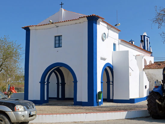 Im Cafe Margues in Sao Bras do Regedouro genehmigte ich mir ein Bier. Die schöne blau-weiße Kirche im Ort schaute ich mir von Außen an, ehe ich weiterlief. Es folgten 7,5 km auf der Nationalstraße, einfach ätzend. Dann war der Weg etwas falsch beschrieben, aber der nette Niederländer von der Quinta Sao Jorge, der hier einen Campingplatz betreibt, wies mir die richtige Strecke zum Stausee. Dort besichtigte ich die kleine Wallfahrtskirche Igreja Nossa Senhora da Tourega. Ich hatte Glück, sie war geöffnet und so konnte ich auch das Innere anschauen.