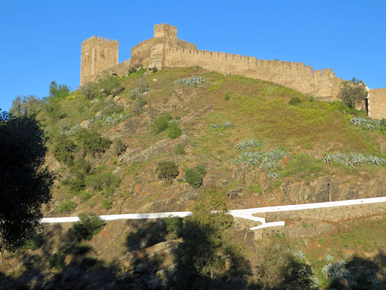 Am Hochufer des Guadiana ging es dann weiter bis Mertola. Auf der gesamten Strecke war ich allein unterwegs. Es ist ein herrlicher Anblick, wenn nach einer Wegbiegung die weißen Häuser Mertolas auftauchen. Doch bevor ich dort ankam, musste ich nochmals ein Stück auf der Nationalstraße laufen, nicht besonders schön. Zum Übernachten hatte ich mir das Hotel Beira Rio ausgesucht. Dies war eine sehr gute Wahl. Ich wurde herzlich gegen 18 Uhr empfangen. Das letzte Stück des Weges hatte sich sehr lang hingezogen. Wenn man müde ist, kommt einem alles noch viel länger vor. Nach dem Duschen und Wäsche waschen ging ich zum Essen. Es gab wieder Baccala, gematschter Fisch, Knoblauch, Kartoffeln, Zwiebeln und Spinat. Mir hat es sehr gut geschmeckt. Anschließend ging ich ins Hotel und wieder früh schlafen. Ich spüre doch, dass ich älter werde.