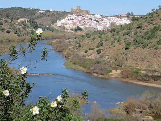 Nach der Besichtigung der Burg machte ich noch einen Spaziergang zum Uhrturm und zur Römerbrücke. Da es sehr warm geworden war, ging ich zum Hotel zurück und zog mich um, bevor ich meine Wanderung durch den Ort fortsetzte. Vom Aussichtspunkt Bombeira do Guadiana hatte ich einen herrlichen Blick über die gesamte Gegend.