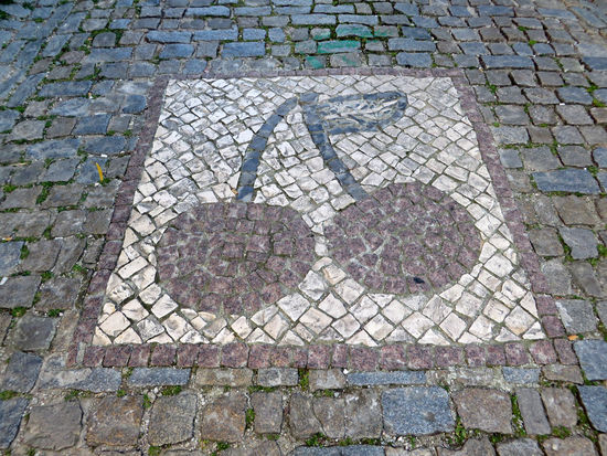 Es war ein Aufstieg von 500 m, aber sehr gut zu gehen. Die Aussichten waren wieder phantastisch. Der Blick auf den Osten von Portugal einfach traumhaft. Nach einer Mittagspause mit „Schläfchen“ an einer windgeschützen Stelle ging es weiter über den Bergkam nach Alcongosta (ca. 470 Einwohner). Die vielen Kirschbäume dort haben gerade angefangen zu blühen. In ein bis zwei Wochen wird hier sicher alles in voller Blüte stehen. Alcongosta gilt als die Kirschenhauptstadt des Landes. Selbst im Straßenpflaster hat man „Kirschen“ integriert.