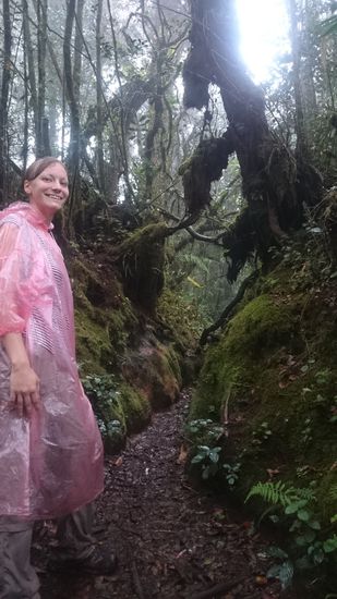 An unserem letzten Tag in den Cameron Highlands wandern wir durch den Nebenwald um den höchsten Berg in der Gegend, den Brinchang, zu erklimmen. Nachdem wir gut gefrühstückt haben, begeben wir uns auf den Weg. Es dauert nicht lange bis wir uns mittendrin in einem echten Cloud Forest befinden. Allmählich wird der Weg immer steiler. Und dann beginnt es zu regnen, was den Pfad zu einer rutschigen Piste verwandelt. Kurz vorm Gipfel geht es fast senkrecht und nur mithilfe von befestigten Seilen weiter. Leider konnten wir anschließend nicht mal eine Aussicht genießen, da der Gipfel mit einer Radiostation vollgebaut ist. Nach einer kurzen Pause ziehen wir in der Hoffnug auf leckeren Kuchen und Heißgetränke in Richtung der Boh Teeplantage los.