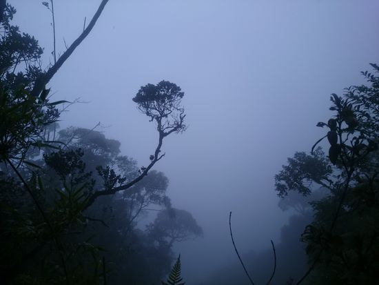 Az utolsó napunkon át akartunk vágni a ködös erdőn és föl akartunk mászni a környék egyik legmagasabb csúcsára a Brinchangra. egy kiadós reggeli után nekiindulunk a hegynek. Nem ttartott sokáig míg belekerültünk a tejfölfehér ködbe. A csapás egyre meredekebb lett. Aztán elkezdett esni és az ösvény hamar egy csatakos csúzdává változott. A csúcs elött nem sokkal szinte merőlegesen vezetett az ösvény és csak a felszerelt kötelekkel lehetett feljutni. Sajnos nem tudtuk a kilátásban élvezkedni mert a tetőt egy nagy radarállomás foglalja el. Egy kis szünet után elindultunk lefelé a teaültetvényekre abban a reményben, hogy csurran csöppen egy kis sütike és valami meleg ital.