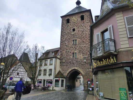 Die erste Station ist Molsheim, auch als Bugatti-Stadt bekannt. Molsheim wurde durch den Automobilhersteller Ettore Bugatti bekannt, der hier seine edlen Karossen herstellen ließ. Heute werden hier vom VW-Konzern noch exklusive Sportwagen in handverlesenen Stückzahlen gebaut. Wir machen uns bei Nieselregen auf einen kleinen Rundgang durch das Städtchen. Ebenfalls sehr pittoresk mit der Metzig, dem ehemaligen Haus der Metzgerinnung, der Chartreuse Molsheim, wo sich ein Bugatti-Museum befindet, der alten Münze und dem Hôtel-de-Ville.