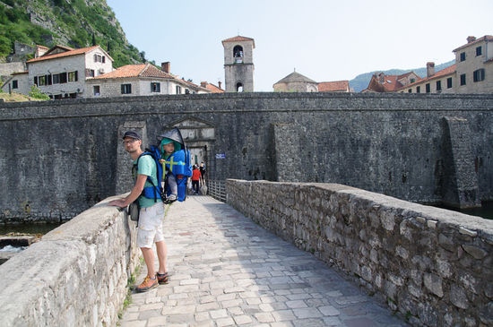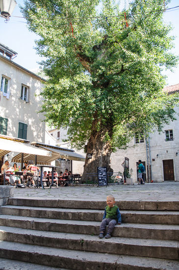 Danach wird gleich der Blick frei auf Herceg Novi und die Bucht von Lovište. Wir sind da aber nur vorbei, weil unser Ziel für heute die Bucht von Kotor war. Sie gilt als südlichster Fjord Europas, also vorbei an der Fähre hinein in die Bucht, und wir waren überwältigt. Ein wunderschöner Anblick, der auch von dem riesigen Kreuzfahrtschiff, das gerade in der Bucht war, nicht getrübt werden konnte. Wir sind bis Morinj gefahren, einem verschlafenen kleinen Nest am Westufer der Bucht. Das Camp Naluka ist schön gelegen, direkt an einem Fluß, der zuerst in einen See und dann ins Meer mündet. Ein Paradis für den Kleinen, Wasser gleich hinter dem Auto und jede Menge Steine. Das stellt allerdings relativ hohe Ansprüche an die eigene Aufmerksamkeit und Aufsichtsdisziplin – und die Nerven.