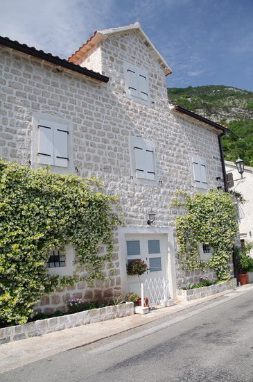 Am nächsten Tag sind wir mit den Rädern in den nächsten Ort, Risan, gefahren, auf der Suche nach einem Geschäft und frischem Gemüse. Am Ortseingang steht ein riesiger verlassener Komplex, ein altes „Xotel“ aus kommunistischen Zeiten. Gemüse haben wir dann auch gefunden, am Hauptplatz am einzigen Marktstand. Markttag ist dort, so hat man uns nachher erzählt, der Sonntag, also sind wir genau einen Tag zu spät. Macht aber auch nichts, das notwendigste kriegen wir auch so. Und als wir wegen der Eier überlegen, hören wir von der Seite: „De Eia san urleiwond, ois bio, kriagst ba uns net um den Preis“. Und dann hat er gleich gar nicht mehr aufgehört zu erzählen, von seinem Vater, der aus Kotor stammt und '57 nach Wien ausgewandert ist, vom Njegusi Schinken, der Jaguarwerbung, die in Risan gedreht worden ist, oder dass er erst voriges Weihnachten zum ersten Mal in seinem Leben in Graz war. Er konnte fliessend montenegrinisch, und hat dann für uns mit der Marktfrau gedolmetscht, so konnten wir um sehr wenig Geld einen ganzen Sack voller Obst, Gemüse und Eier einkaufen.