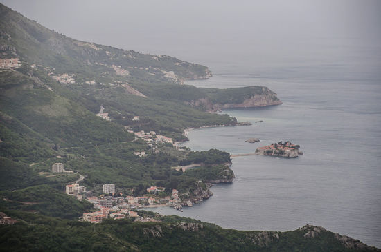 Sveti Stefan. Das einstige Fischerdorf, das jetzt eine rießiges Luxusresort ist. Uns Normalverdienern bleibt der Zugang zur Insel untersagt.