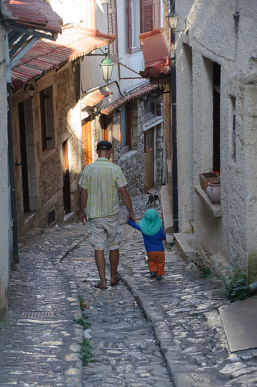 Wir sind dann vor der Entscheidung gestanden, ob wir noch weiterfahren sollen, zum Beispiel nach Gortys, oder in Karytaina bleiben sollen. Nach ein bisschen hin und her haben wir uns fürs bleiben entschieden. Dadurch hatten wir noch einen entspannten Nachmittag, Georg konnte noch ein wenig am Hauptplatz herumlaufen, eine Spielplatz haben wir auch noch gefunden, und so konnte er noch seine überschüssige Energie loswerden. Als wir vom Spielplatz weg sind, hat uns ein älterer Grieche angesprochen, ob wir aus Deutschland sind. Als wir das verneint haben und gemeint haben, wir sind Österreicher, war er gleich besser aufgelegt. Mit Händen und Füssen hat er uns klar gemacht, was er von der Merkel'schen Politik gegenüber Griechenland im letzten Jahr hält...