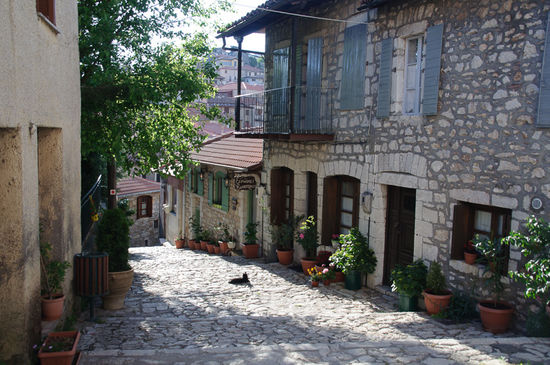 Am nächsten Tag sind wir wieder von Dimitsana aufgebrochen. Die Nacht war kälter als die zuvor, und in der Früh hatten wir sogar nur 15Grad im Auto. Man merkt dass man auf knapp 1000 Meter Seehöhe schläft. Erster Stopp an dem Tag war Stemnitsa, ein Nachbarort von Dimitsana auf dem Weg der Schlucht entlang. Es ist noch alles sehr beschaulich ruhig in der Gegend, zumindest was den Tourismus angeht. Was die Idylle ein wenig stört ist dass sehr viele einheimische Griechen mit ihren Pick-ups mitten auf dem Hauptplatz oder auch der Hauptstrasse durch den Ort parken. Wir haben schon mitbekommen dass Griechen ihre Wege nicht so gerne zu Fuß erledigen. Da wird auch schon mal für ein paar Meter zum Bäcker oder ins Dorfcafe das Auto genommen. Gut, eine Stadt ist auch für die Bewohner gemacht, und nicht für die Touristen, also ist sich beschweren hier wirklich nicht angebracht. Wir haben ein paar nette Stunden in der Stadt verbracht, bevor wir weitergefahren sind.