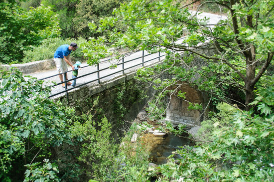 Alt und neu. Die alte byzantinische Brücke war früher auf dem 5000 Drachmen Schein abgebildet. In der MItte seht ihr Georg und Markus beim Steine werfen.