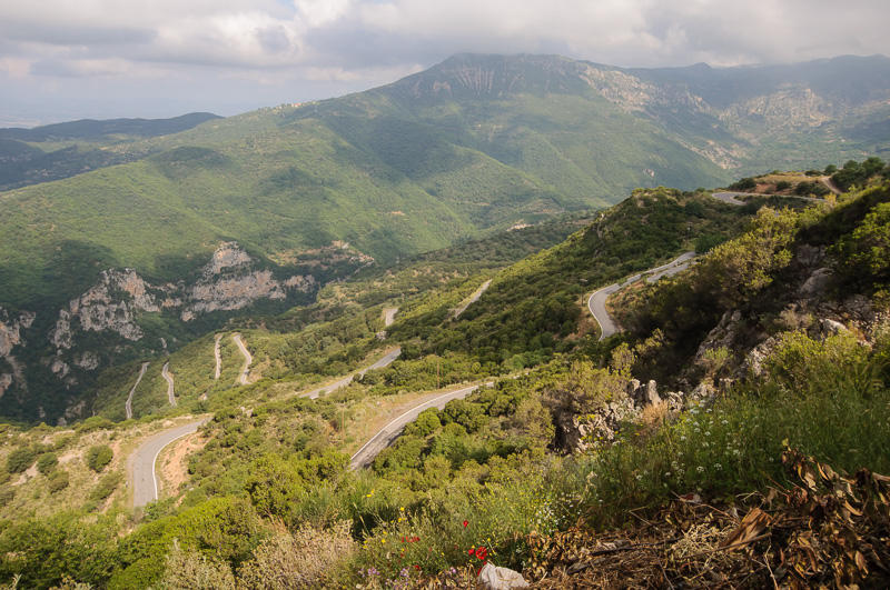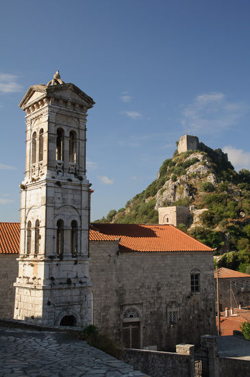 Nächstes Ziel, Karytaina am südlichen Ende der Schlucht. Man fährt doch wieder einige Höhenmeter bergab, von Stemnitsa auf knapp 1100 Meter auf circa 450 Meter, dadurch wird es auch wieder merklich wärmer. Karytaina hat eine spektakulär gelegene Burg, von der man quasi einen Luftaufnahmenblick auf die Stadt und die Umgebung hat.