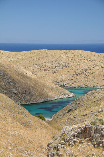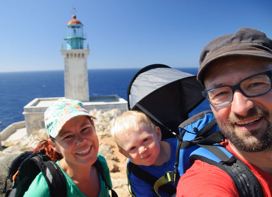 Am nächsten Tag sind wir mit dem Auto bis nach Kokkinogia, der letzten Siedlung der Halbinsel gefahren. Von dort geht ein kurzer Wanderweg zum südlichsten Punkt von Festlandeuropa, dem Kap Tenaro. Ein lustiges Gefühl, dort zu stehen, und auf das Meer hinauszuschauen. Von den vorbeiziehenden Frachtschiffen und Öltankern darf man sich halt nicht stören lassen. Beim Parkplatz gibt es auch eine schöne kleine Badebucht, wo wir gleich unsere Mittagsjause gegessen haben. Ein Deutscher, den wir dort getroffen haben, hat uns erzählt dass er beim Harpunenfischen einen Kugelfisch gesehen hat. Die sind durch den Suezkanal, bzw. im Brackwasser der grossen Frachter ins Mittelmeer gekommen und vermehren sich hier anscheinend prächtig.