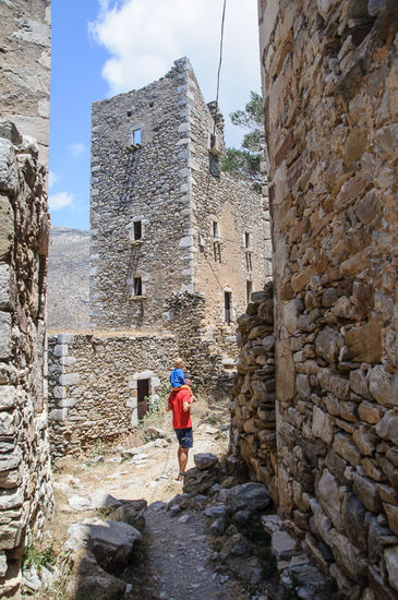 Weiter ging die Fahrt dann nach Vathia, das an der Westküste liegt. Vathia ist eine der am besten und authentisch erhaltenen Siedlungen mit den typischen Wehrtürmen der Mani. Bei den blutigen Familienfehden, die bis zum Ende der 19. Jahrhunderts immer wieder ganze Clans ausgerottet haben, haben sich die Familien gegenseitig mit Kanonen von ihren Türmen aus beschossen. Teilweise werden die Türme restauriert, bzw. werden an manchen Orten wie z.B. in der Nähe von Limeni viele Ferienanlagen in genau diesem typischen Wehrhausstil gebaut. Das hat schon was.