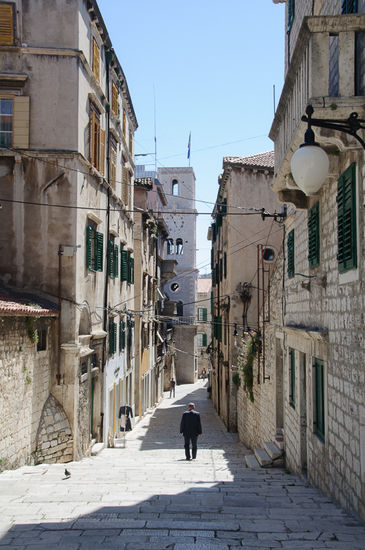 Am zweiten Tag kam dann aber endlich die Sonne raus, und wir sind mit dem Bus nach Šibenik, um uns die Stadt ein wenig anzusehen. Georg lernt im Moment Worte, und an dem Tag war dann auch „Autobus“ dran. Die Stadt selbst ist sehr schön und hat uns gut gefallen. Es gibt jetzt im April noch keinen Massenansturm und wir konnten sehr entspannt durch die Altstadt flanieren. Allerdings wurde das für Markus dann doch ein wenig anstrengend, weil er Georg in der Rückentrage hatte und einige Stufen zu gehen waren.