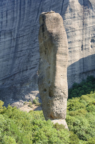 Am nächsten Tag wollten wir trotz der hohen Temperaturen eine kleine Wanderung machen, wieder einmal ein wenig in Schwung kommen und nicht nur im eigenen Saft köcheln. Allzu lang soll es aber dann doch nicht sein, wir wollen uns ja nicht übernehmen. Also haben wir den Weg zum Obelisk oberhalb von Kastraki ausgewählt. Die Hitze war anstrengend, aber die zweite Hälfte des Weges ging durch Wald, da war es wenigstens schattig. Während der Wanderung ändern sich ständig die Perspektiven auf die massiven Wände, hinter der nächsten Kurve sieht es schon wieder anders aus, man hat ständig neue Ausblicke auf die Felsformationen rund um einen. Schon allein deshalb zahlt es sich aus da herumzulaufen. Wir haben dann auch noch eine kleinen geführte Gruppe gesehen, die ein Stück weiter oben herumgeklettert ist. Da hat es schon ein wenig gejuckt unter den Fingernägeln. Aber nach Meteora kann man auch ein zweites mal kommen, und dann mit ein wenig mehr Ausrüstung. Durchgeschwitzt sind wir dann wieder zurück und zum Pool zum Baden.