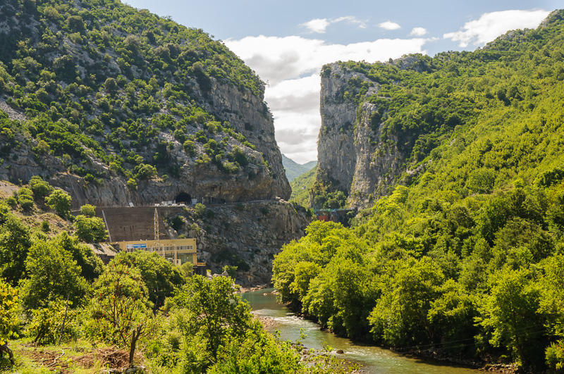 Der Durchbruch des Flusses Mat durch die Berge. Die Engstelle wird durch eine Staumauer versperrt und dahinter befindet sich der erste von einigen Stauseen, die wir in den nächsten Tagen sehen werden.