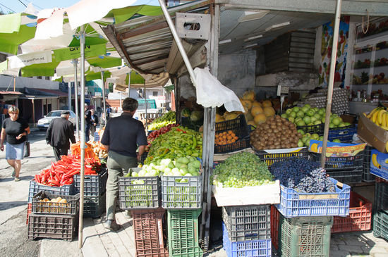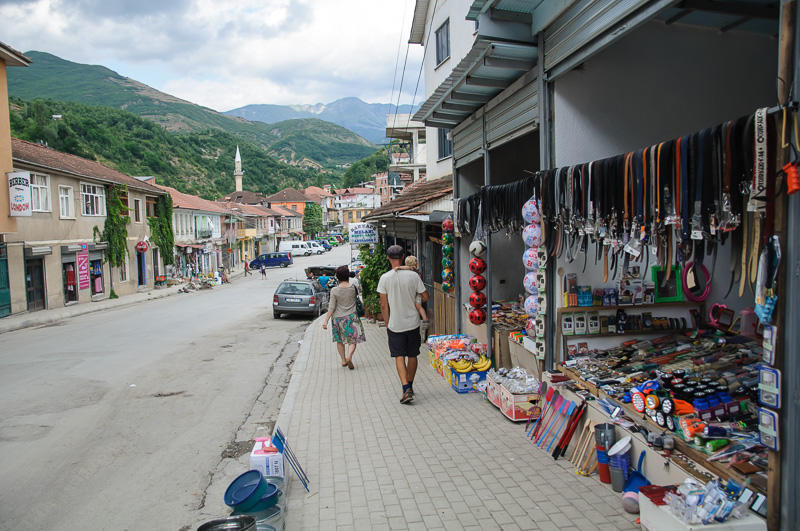 Peshkopi ist so richtig anders, selbst für albanische Verhältnisse. Pferdefuhrwerke in der Stadt sieht man hier sehr häufig, viele vor allem ältere Leute sind noch im traditionellen schwarzen Gewand unterwegs. Das Zentrum der Stadt bildet zum einen der Marktplatz mit dem Basar, und dann gleich anschliessend die Fussgängerallee mit Bars und Geschäften. Die Linden der Allee wurden leider alle radikal gekürzt, früher muss diese Strasse wesentlich beeindruckender gewesen sein.