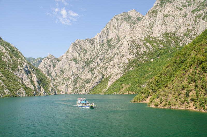 Dann geht es also los. Durch eine enge Schlucht schlängelt sich der Stausee des Drin dahin, und die Wände sind manchmal fast zum Greifen nah. Immer wieder sieht man in kleinere und auch größere Seitenärme hinein. Und dann sind da auch noch die Häuser und Bauernhöfe. Die stehen mitten im Nirgendwo, keine Strasse führt dorthin, nur ein kleines Boot liegt an der Anlegestelle darunter. Kaum vorzustellen, wie abgeschieden die Menschen hier immer noch leben.