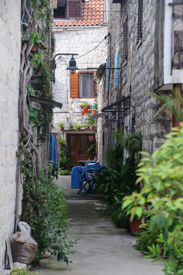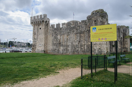 Trogir stand von Anfang an auf der Liste der Orte, die wir an der Adriaküste gerne sehen möchten. Die Fahrt dorthin hat uns die Küstenstrasse entlang geführt, mit kleinen Orten und Marinas, Primosten wahrscheinlich der bekannteste unter ihnen. Wir haben uns dann einen Campingplatz gleich neben Trogir herausgesucht, Camp Rožać, 2 km von der Stadt entfernt auf der vorgelagerten Insel Čiovo. Es war schon ziemlich spät als wir ankamen, also haben wir ausser das Notwendigste auspacken, Georg verköstigen und Bett herrichten, nicht mehr viel getan.