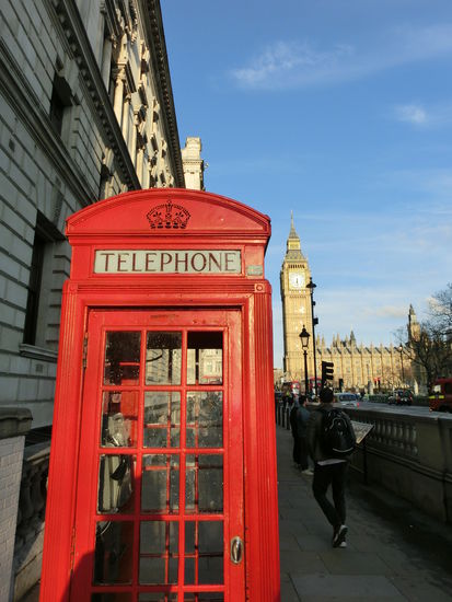 Von dort spazierten wir quer über The Mall entlang dem St. James`s Park zum Trafalgar Square, wo sich gerade der erste schreckliche Regenschutt ankündigte. Dieser zwang uns zur Einkehr in das Café in the Crypt unter St. Martin in the Field´s, einer meiner altbekannten Lieblings-Plätze. Mittlerweile ist dieses Café kein Geheimtipp mehr, aber es bietet immer noch ein ruhiges Plätzchen im/unterm City-Trubel. Wir hatten Tee und Scones mit clotted cram und jam - sehr entspannt und wärmend! Später, nachdem die Sonne wieder zu sehen war, führte uns Whitehall vorbei an den Horse Guards und Downing Street (wo außer einer massiven Absperrung fast nichts zu sehen ist) zu Big Ben, Houses of Parliament and Westminster Abbey. So hatten wir bei schönstem Abend-Sonnenschein schonmal einen ersten Blick auf die großen Sights von London geworfen. Zurück fuhren wir wieder mit dem Bus - wenn man keine Eile hat, ist das die beste Art, die Stadt zu entdecken!