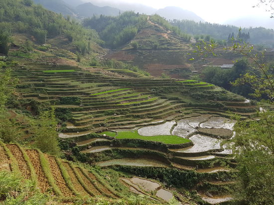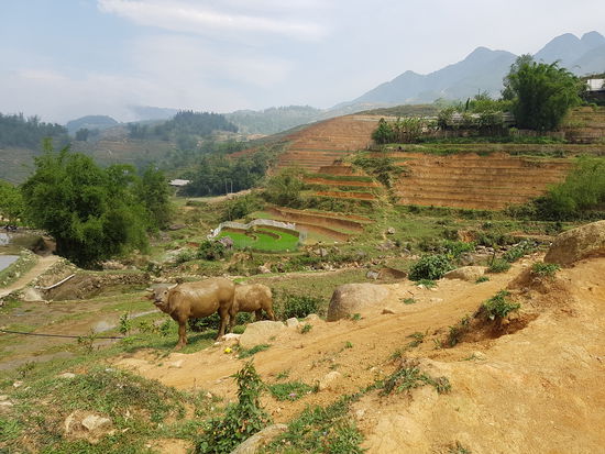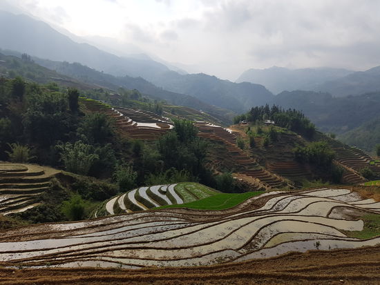 Es war auch ein unglaublich interessanter Trip, da Song uns viel über ihr Leben, den Reisanbau, ihr Dorf und die Behandlung der Hmong durch die Vietnamesen erzählt hat. Sie selber ist 27 Jahre alt und hat 3 Kinder (10 Jahre, 8 Jahre und 10 Monate). Sie selber hat 8 Geschwister, was in ihrer Kultur üblich ist. Bei den heutigen Generationen kontrolliert die Regierung jedoch die Geburtenraten der Bergdörfer und schreibt ein Maximum von 4 Kindern vor, wie sie erzählte. Sie hat mit 16 geheiratet und ist in das Dorf ihres Mannes gezogen. Den durfte sie sich übrigens selber aussuchen, was bei den Black Hmong selbstverständlich, bei anderen Minderheitenvölkern jedoch nicht überall üblich ist. Sie verdient den Lebensunterhalt durch Touristenführungen und denVerkauf von Handarbeiten. Parallel arbeitet sie noch mit ihrem Mann auf ihrem eigenen kleinen Reisfeld. Die Reisernte reicht jedoch meist nicht aus, um ihre Familie zu ernähren, sodass sie zukaufen müssen. Ihr Mann spricht kein Englisch (ihr Englisch ist top - sie sagt, sie hat es von denTouristen gelernt) und hat somit nichts mit Touristen am Hut. Er hat entweder einen freien Tag, wie sie berichtet, oder er arbeitet im Reisfeld.