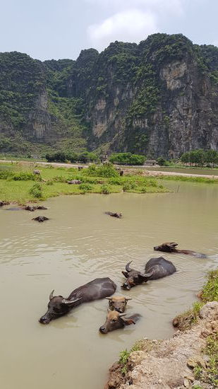 Karstfelsen, Reisfelder, Wasserbüffel... die Umgebung von Ninh Binh
