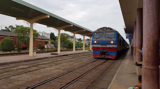 Heute waren wir früh wach und haben uns somit passend für den 8:35 Uhr Zug auf zum Bahnhof gemacht. Wir sind nochmal im Soft Seater für 2,5 Stunden mit dem Wiedervereinigungsexpress von Hue nach Da Nang gefahren. Man hätte die Strecke auch mit dem Bus machen können und sogar Taxifahrer hatten sich für die relativ kurze Strecke angeboten, jedoch wollten wir unbedingt den Zug nehmen, da die Strecke zwischen Hue und Da Nang über den Wolkenpass führt, der besonders schön sein soll. Und so war es auch. Der Wolkenpass ist die Wetterschneide zwischen dem tropischen und subtropischen Wetter in Vietnam und wir hatten Glück, denn der Wolkenpass hat seinen Namen nicht ohne Grund aber heute war die Sicht völlig klar. Und so schoben wir uns die Berge hinauf und hinunter an der Küste entlang Richtung Da Nang. Da die Fahrt landschaftlich grossartig war, verging sie auch erstaunlich schnell. Man kann die Strecke auch mit dem Bus, Auto oder Moped machen und über den Hai Van Pass fahren, allerdings ist vor einiger Zeit der Hai Van Tunnel gebaut worden, sodass bei vielen Touren die wohl schönsten Stellen des Passes durch den Tunnel abgekürzt werden. Daher setzten wir auf den Zug, der zuverlässig immer die selbe Strecke nimmt. Diese Strecke können wir wärmstens weiter empfehlen (bei klarer Sicht).