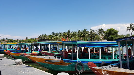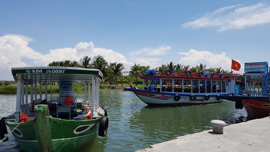 Wir sind bereits ein paar Tage in Hoian und lernen immer mehr von dieser schönen Stadt kennen. Wir haben im Voraus sehr viel über Hoian gehört und jeder, der von dieser Stadt erzählt, ist schwerauf begeistert - so auch wir. Seitdem das Wochenende (mit Lichterfest) vorüber ist, ist es viel ruhiger und gemütlicher in der Stadt und man kann zu jeder Zeit hervorragend durch die Strassen schlendern. Da es jetzt leerer ist, kommt die schöne Altstadt mit vielen erhaltenen Häusern aus dem Anfang des 19. Jahrshunderts umso besser zur Geltung und wir verstehen, warum die Altstadt zum UNESCO Weltkulturerbe erklärt wurde. Auch die Lage am Fluss mit den bunten Fischerbooten hat Charme. Die Häuser sind häufig vermietet an Händler, Cafes und Restaurants, sodass Hoian perfekt für Shopping aber auch einen gemütlichen Kaffee am Rande des Treibens ist. Hoian hat wirklich grossartige Restaurants. Neben dem Ba Le Well und Banh Mi Phuong haben wir es tatsächlich mal mit einem indischen Restaurant versucht - dem Ganesh Indian Restaurant. Es war mit das beste indische Essen, das wir je hatten. Wir hatten aus hygienischen Gründen eigentlich geplant, in Vietnam kein Eis zu essen. Zum Glück haben wir diese Vorsätze schon in Ninh Binh über Bord geworfen, denn sonst hätten wir uns hier bei Dai Lo (wir glauben, das ist der Name) das beste Kokosnussmilch-Eis schlechthin entgehen lassen. Und es gibt so viele gut aussehende Restaurants und Cafes, die wir nicht testen konnten - wir müssen nochmal wieder kommen.