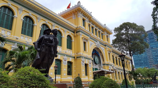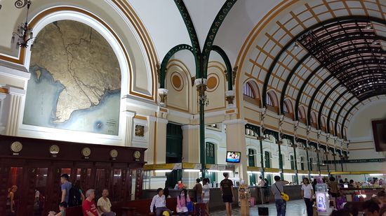 Dann haben wir uns zu Fuss auf eine Erkundungstour der Stadt gemacht und haben uns unter anderem das wunderschöne alte Post Office sowie die Kirche Notre Dame angeschaut. Als es anfing zu regnen beschlossen wir, zu Abend essen zu gehen. Das erste Mal seit 4 Wochen haben wir wieder Restaurantketten vor der Nase, die wir kennen (vielleicht gab es zwischendurch auch mal eine aber sie sind uns nicht aufgefallen) aber die letzten zwei Abende möchten wir es noch landestypisch haben. Also beschlossen wir den nächstgelegenen Tipp des Lonely Planet zu testen: Huong Lai (38 Ly Tu Trong, Quarter 1). Das war eine super Idee. Das Restaurant besteigt man über eine etwas steilere Treppe und es liegt im ersten Stock eines alten französischen Hauses. Im Huong Lai wird Strassenkindern oder Kindern aus benachteiligten Familien eine Chance auf eine Ausbildung in der Gastronomie gegeben und sowohl das typisch vietnamesische Essen als auch der Service der jungen Kellner waren extrem gut. Das Ambiente ist mit Abstand das Schönste, das wir auf der gesamten Reise gesehen haben und die Preise sind vietnamtypisch wirklich gering. Mal gucken, ob wir morgen was Neues testen oder nochmal ins Huong Lai gehen.
