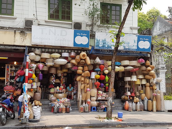 Nach dieser grossartigen Reiseberatung starteten wir unseren Rundgang durch Hanois Altstadt. Der Trubel ist wirklich noch sehr ungewohnt und eine solche Unstrukturiertheit haben wir in unserem ganzen Leben noch nicht erlebt (oder wir erkennen die Struktur einfach noch nicht). Aber die Stadt ist genial. Egal wo man hinschaut, es gibt so viel zu sehen, zu beobachten, zu entdecken. Die Geschäfte sind strassenweise sortiert. Unsere Tour führte uns zu der Strasse mit den Blechdosenmachern, der Strasse mit den Schuhmachern, mit den Strohmatten, mit den Knöpfen, mit den buddhistischen Altären, mit den Spielzeuggeschäften, mit den Seidenläden.... es ist beeindruckend und so hübsch anzusehen. Es heisst, entweder man liebt Hanoi oder man kann dieser Stadt nichts abgewinnen. Wir lieben Hanoi jetzt schon.