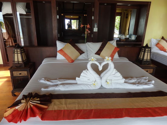 Das Frühstück ist ausreichend und abwechslungsreich, alles was das Herz begehrt und für jeden was dabei. Es sind nur wenige Bungalows belegt, es ist sehr entspannend hier. Wir haben uns für 4 Tage in einem Beachfront-Bungalow gemietet und haben gleich ein Angebot bekommen 4 für 3, also 4 Nächte bleiben 3 bezahlen. Klingt super!!! Da haben wir gleich zugeschlagen und auch noch eine Nacht verlängert.