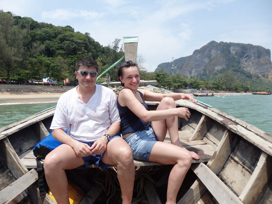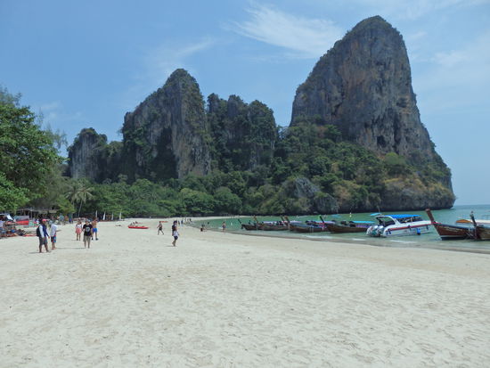 Mit dem Longtailbot kann man für 100 Baht pro Person nach Rai Leh Beach fahren, wir hatten erst überlegt, hier auf dem Weg nach Ko Lanta zu übernachten, haben das aber nach dem Besuch gleich wieder verworfen.