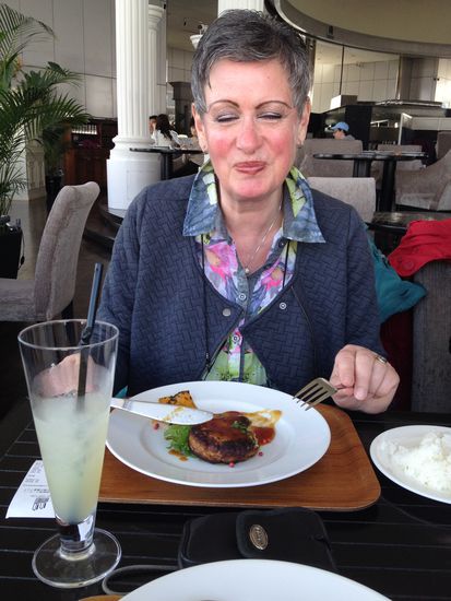 Nach dem Essen genießen wir erst einmal die diversen Ausblicke, frönen dann jedoch dem Alkohol, da es zum Essen nur Kaffee/ Grapefruitsaft gab. Dann stellen wir allerdings fest, dass sich bereits erste Ermüdungserscheinungen einstellen.